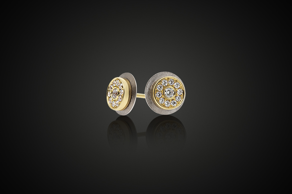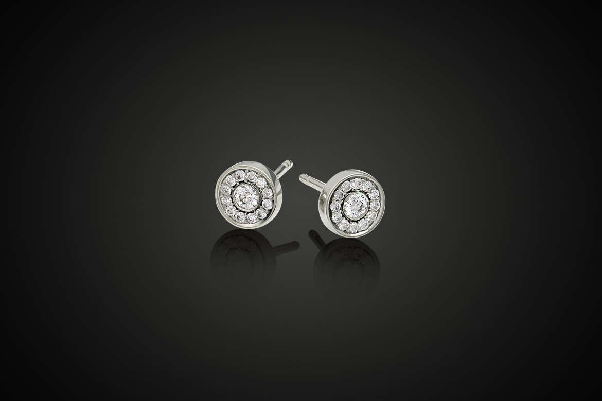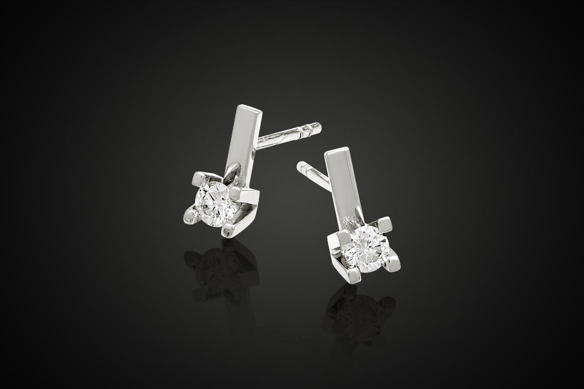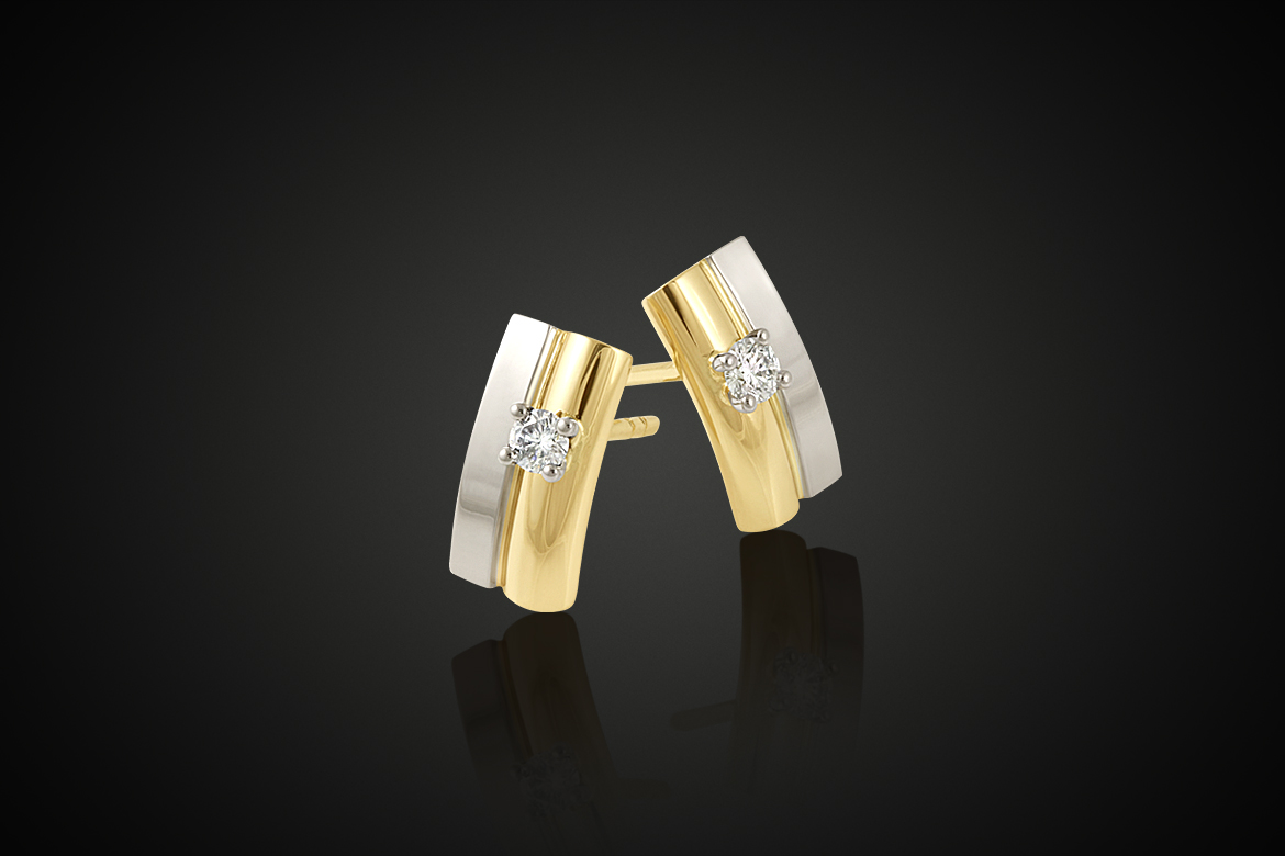 Custom Made wit gouden oorstekers, vervaardigd uit 14-karaats goud met totaal 0.20CT briljant geslepen diamanten.