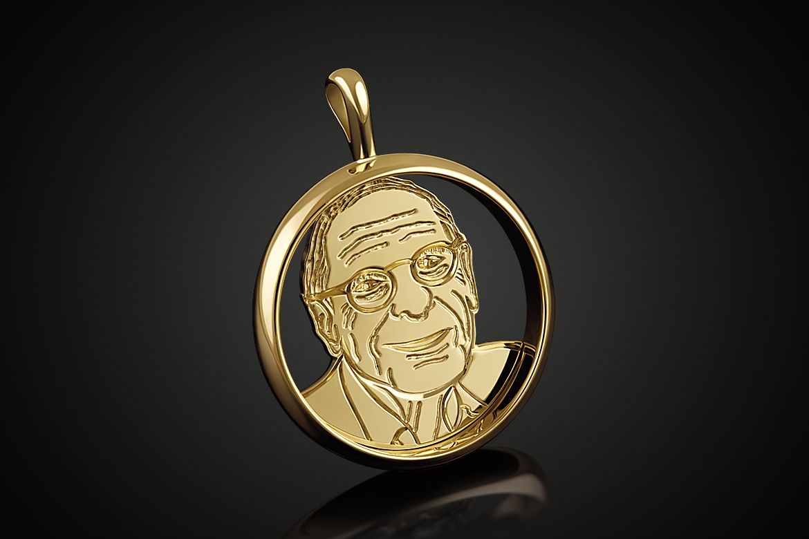 Custom-made geel goud gedenksieraad, vervaardigd uit 14-karaats goud met portret.