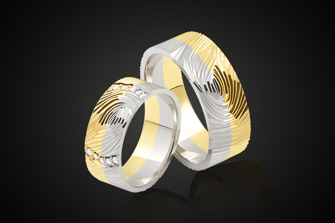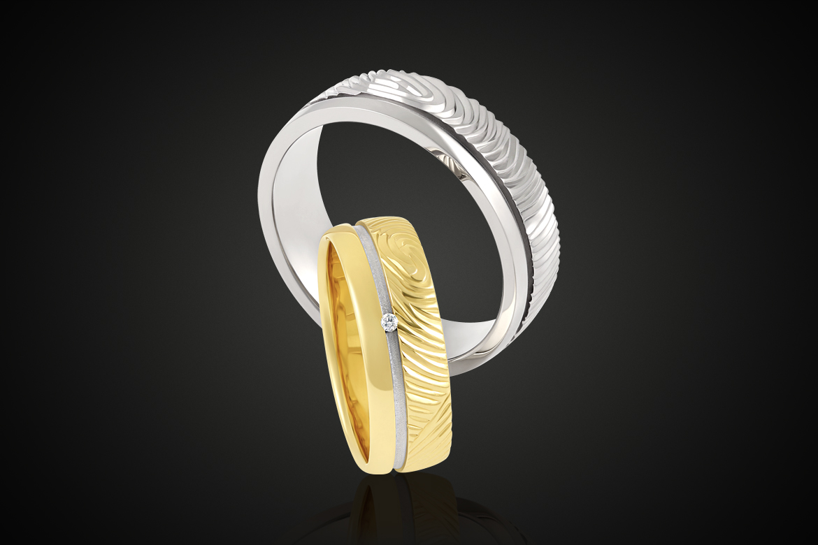 Custom-made geel en wit goud gedenksieraad, vervaardigd uit 14-karaats goud met vingerafdrukken.